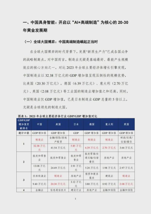 报告指出,中国制造业的全球压倒性优势为具身智能奠定产业土壤。2023年,中国制造业增加值达到32.38万亿元,已超过美、德、意、英制造业增加值之和,并是日本制造业GDP总量的5倍以上。在传统制造过剩和低附加值的背景下,“高端制造”成为转型必然,而具身智能正是这一战略升级的底层支撑。