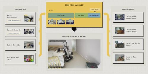此外π0.5能够将图像观察、语言命令、目标检测、语义子任务预测和低级动作等多模态数据示例进行融合。这些数据不是简单地叠加在一起,而是在训练中深度融合。比如,图像观察数据让机器人能识别环境中的物体信息,语言命令数据帮助机器人理解人类意图,目标检测数据能让机器人快速锁定任务相关物体,语义子任务预测数据可辅助规划任务流程,低级动作数据则直接控制机器人硬件执行动作。通过建立不同模态数据间的关联,让机器人能更精准地响应指令。