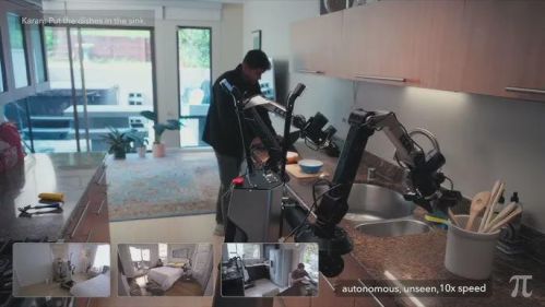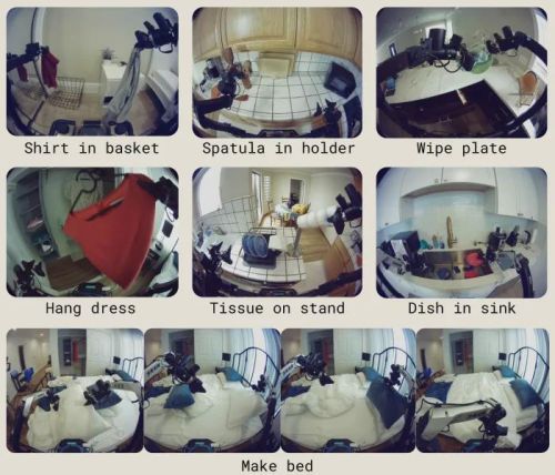 π0.5 能够让机器人在训练数据中从未遇到过的新家庭环境中完成清洁任务,为解决复杂任务提供了有效方案,提高了机器人在家庭、办公等场景的实用性。