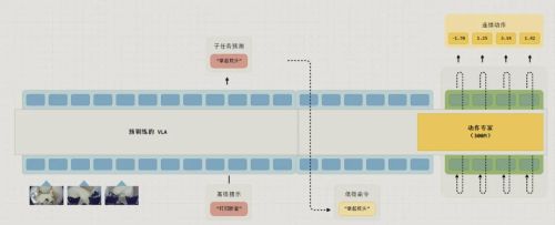 π0.5基于通用视觉语言模型(VLM)构建VLA模型,通过优化网络结构减少信息传递损耗,提升多模态数据处理效率。处理视觉信息时,采用高效卷积神经网络快速提取关键特征;处理语言时,改进相关网络结构以增强对长文本指令的理解。同时,训练中通过调整参数更新策略(如采用自适应学习率算法)加快模型收敛,使模型能在有限时间和资源下,更充分地学习各类数据源中的知识与模式,进而提升整体性能和泛化能力。