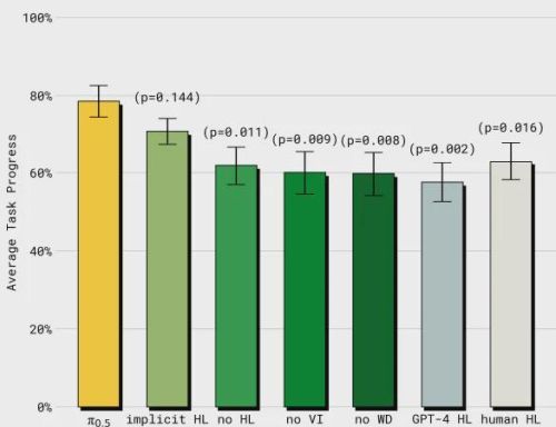 此外,π0.5模型通过联合训练不同模态的数据,增强了从语言到策略的知识迁移能力,为机器人学习系统打造了更丰富高效的训练方案,使其能实现更灵活的泛化。
