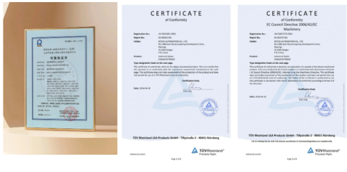 埃斯顿以南京为研发中心,整合东南亚、欧洲、北美等全球研发资源,构建了具有全球竞争力的研发布局和多层次研发体系,其机器人产品凭借硬核实力通过多项权威认证,包括120000小时MTBF证书、欧盟MD指令,北美NRTL标准(UL1740、Z434)、CE等国际标准的安全认证,标志着埃斯顿机器人在稳定性、可靠性和耐用性方面达到了行业顶尖水平,能够满足汽车行业对设备高可靠性、高稳定性的严格要求,为大规模产业化应用提供了坚实保障。