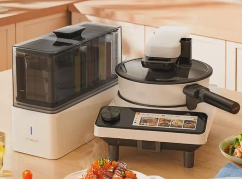 科沃斯集团旗下的添可品牌,五年前便在炒菜机器人赛道展开深耕布局,并基于中餐数字化、标准化开展相关研发;2023年,持续开拓商用领域,推出“食万星厨”商用炒菜机器人。经过持续的技术升级与产品迭代,食万星厨已为行业提供了一套可复制的解决方案。截至2025年,食万1.0已经发展到食万3.0pro,目前最新款食万天工搭载AI大模型能够实现“千人千味”。食万天工的“具身烹饪体”,能模拟10档控火、8种调味动作,1:1复刻大厨技能,实现全链智能烹饪闭环,从经验主义走向工业标准化。在这个过程中,添可通过红外感应与NTC温度传感器精准控温,打造快速且均匀的立体加热效果,达到猛火快炒的口感,实现了锅气。