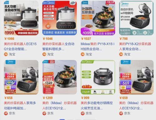 苏泊尔2024年制定炒菜机器人的发展方向,一是在用户体验层面,从2023年的企业创作、达人共创食谱,到2024年用户创作食谱;二是在内容创作层面,借助AI能力,一方面自研数字化食谱仿真测试仪,实现同品类产品数字化食谱的标准化,提高单道食谱的利用效率,另一方面实现百变的智能食谱智能创作(食材搭配、图片生成、烹饪曲线匹配);三是从IoT(物联网)连接层面,以本地自协作物模型为底座,实现跨品牌设备的互联互通主动服务的生活体验,为后续家用服务机器人普及奠定工具和机器人协作的基础。苏泊尔推出的家用智能炒菜机器人Cook3,由于价位在1000多元,所以目前在京东炒菜机器人排行榜中居首位。