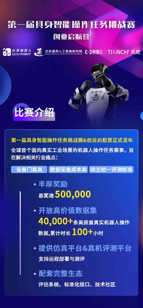 奖金50万!乐聚、通研院、阿里云天池联合举办首届具身智能操作任务挑战赛&创业启航营