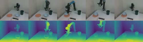 [图. 生成RGB-D操作视频,第一行代表RGB图,第二行代表对应的深度图。]