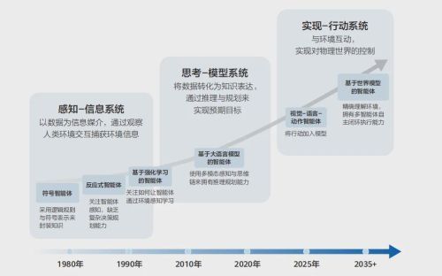 其次,在华为的AGI演进逻辑中,具身智能是连接虚拟认知与物理行动的关键桥梁。报告明确提出,走向物理世界是AGI形成的必由之路,而具身智能正是AI感知-认知-决策-行动闭环的物理载体,它能让AI像人类一样通过身体感知环境、在互动中学习,解决通用大模型困于概率统计、缺乏物理推理的痛点。例如,AlphaFold依赖电子显微镜的蛋白质数据实现突破,而未来具身智能可通过工业机器人的实时操作数据,让AI掌握复杂制造工艺的物理规律。