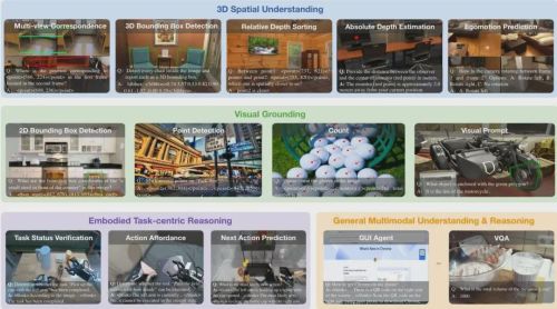 第一阶段是持续预训练,专注于打好具身基础。在这个阶段,Robix重点强化对物理世界的理解能力,训练数据涵盖3D空间理解、视觉定位、任务中心推理和通用多模态推理。这些都是机器人真正走入现实世界所必需的常识,比如判断物体距离、理解“手机在桌子的左前方”这样的空间描述,以及进行任务逻辑推理。
