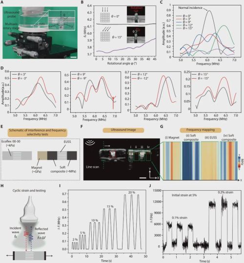 EUSS的传感机制建立在机械变形改变其声学特性的基础上。当传感器受到外力、温度变化或振动作用时,其硅橡胶基质会发生微应变,导致空气腔的间距和形状改变。这种变化会直接影响声子带隙的位置,表现为反射超声波的峰值频率发生偏移。通过外部的超声探头检测这一频移,就能高精度地反推出EUSS所处环境参数的变化。