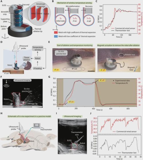 温度在炎症检测、肿瘤热消融等场景中至关重要,但现有技术难以在微型尺度上实现无线、实时的温度感知与调控。