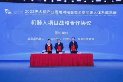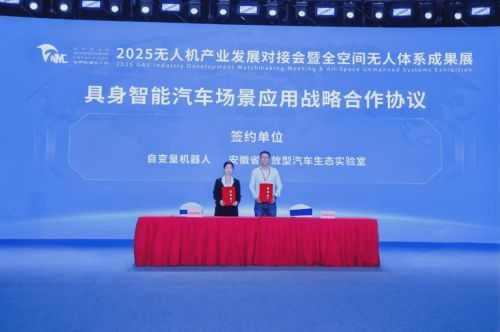 9月20日举办的2025世界制造业大会,无人机产业发展对接会暨全空间无人体系成果展现场,国际先进技术应用推进中心(合肥)、合肥市高新区管委会、安徽省开放型汽车生态实验室与自变量机器人签署战略合作协议。同时,自变量机器人创始人&CEO王潜作了《具身智能生态建设计划》主题分享。