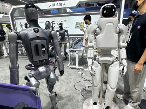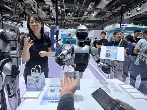 在机器人展区,《科创板日报》看到傅利叶、非夕科技、梅卡曼德、越疆机器人、开普勒、新松机器人、钱江机器人、节卡机器人、EX机器人、柴孚机器人等。