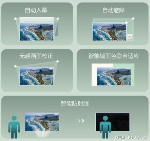 EF-50搭载智能科技,拥有超强 ToF sensor全自动画面调节功能,具备自动入幕、自动避障、无感画面校正、智能墙面色彩自适应和智能防射眼功能,开机即可呈现理想画面。与腾讯联合打造双桌面UI系统,支持一键切换电影、音乐、氛围和日常四大自然情境空间,让操作如自然流转般轻松顺畅。