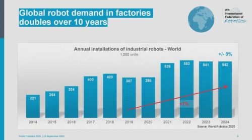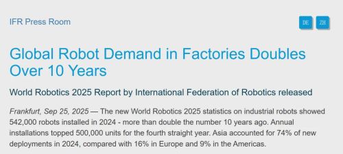 2025年9月25日,国际机器人联合会(IFR)发布了备受业界瞩目的《世界机器人报告2025》。这份权威报告不仅揭示了全球工厂与专业服务领域中机器人技术的最新部署数据,更深刻描绘了在后疫情时代、地缘政治紧张及技术革命多重因素交织下,全球机器人产业所呈现的韧性、变革与未来图景。本文将对报告内容进行全面梳理与深度分析,探寻数据背后的产业逻辑与发展脉络。