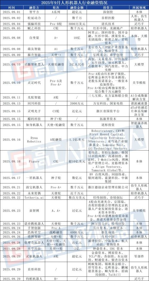 就在市场普遍预期下半年资本将趋于收缩,9月的人形融资总额逆势而上,再度创下全年新高。
