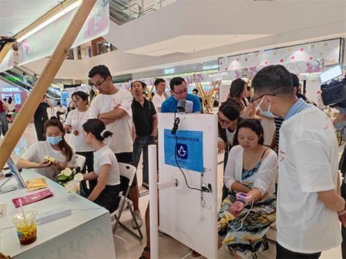 (在某青年疗愈市集上市民体验AI中医ChatiSS系统,正进行AI脉诊)