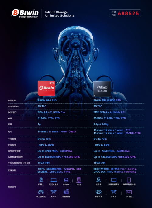 目前,佰维正联合多家 SoC 平台与终端品牌厂商,共同推进 Mini SSD 接口规范与生态标准的建立,加速其在 AI 终端、人形机器人等前沿领域的规模化落地。