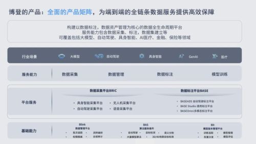 针对不同行业的差异化需求,博登智能构建了可配置化的柔性数据中台。在自动驾驶领域,与吉利、零跑等车企合作开发预标注方案与占据网络标注工具,通过降噪算法处理雨雪天激光雷达数据噪声;在大模型领域,为腾讯、阿里定制教育类试题标注流程;在具身智能领域,为头部企业提供多模态交互式标注服务,通过合成数据生成覆盖复杂场景的数据。