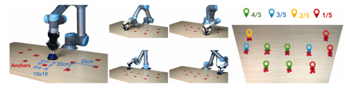 CEI为每个机器人构建“功能表征”,记录与物体交互的关键信息。在机器人末端执行器表面选取可能与物体接触的点,同时记录每个接触点的表面法线方向,这些点与方向的组合构成机器人“交互能力画像”。