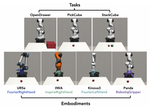 机器人领域长期存在一个关键问题:基于特定机器人训练的操作技能,难以直接应用到其他型号机器人上。不同机械臂结构、末端执行器形态差异,导致机器人技能复用困难。