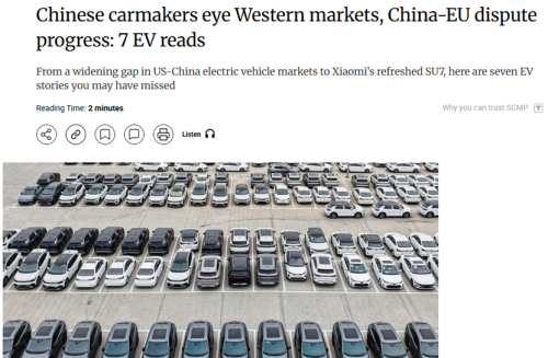 《南华早报》近日发文称,近日,欧盟发布了即将在2026年解决对中国电动车辆反倾销关税的指导方针,这标志着关于持续多年的中国电动汽车贸易纠纷的重大进展。