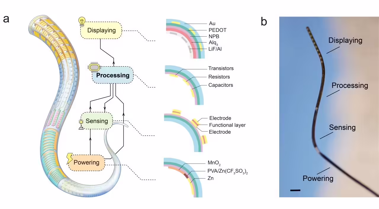 研究人员指出,这项技术为构建高度集成的纤维电子系统提供了新的路径。例如,在脑机接口领域,超细的“纤维芯片”有望集成高密度电极与预处理电路,制备出更柔软、生物相容性更好的神经探针。