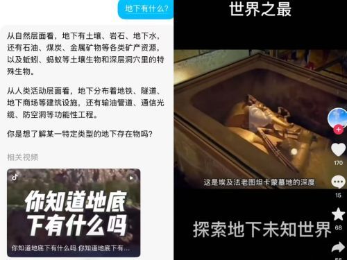 在5岁半的贝贝眼里,爸爸手机上的豆包是个“无所不知”的伙伴。一次,她好奇地问豆包:“地下有什么?”豆包随即开始平和地描述,并在屏幕上推送了一条相关视频。贝贝点开,伴随语音解读,画面从可爱的地鼠洞穴,迅速切换到阴森的埃及法老墓穴。“法老是什么?”被画面吸引的贝贝追问道。豆包再次给出解释,并顺势推荐了更多“法老”“木乃伊”“金字塔诅咒”相关的视频。
