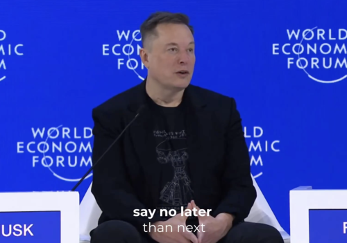 马斯克22日在达沃斯预测AI发展。图源:视频截图