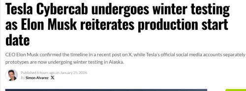 外媒表示,综合来看,马斯克的生产更新和特斯拉的测试帖子表明,虽然 Cybercab 即将开始生产,但验证工作仍在积极推进,以确保其在真实环境中的可靠性。