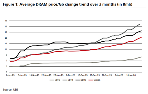 瑞银指出,车规级DRAM在耐温性、抗震性和可靠性标准上,均超过普通消费电子产品要求。这些增强的标准导致了价格溢价,并在供应短缺期间放大了成本敏感性。