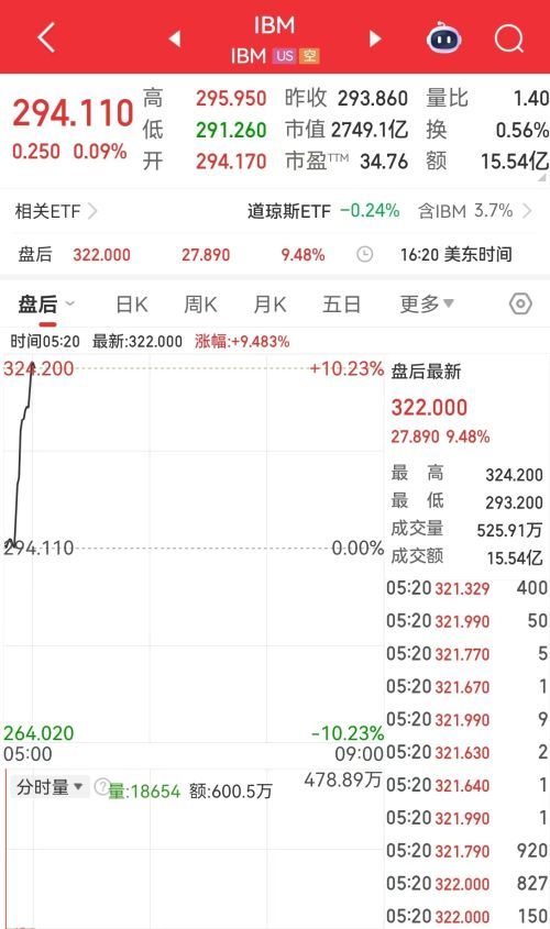 IBM第四季度营收196.9亿美元,同比增长12%,预估为192.1亿美元;第四季度软件收入90.3亿美元,同比增长14%,预估88.2亿美元;第四季度咨询收入53.5亿美元,同比增长3.4%,预估53.8亿美元;第四季度每股运营收益4.52美元,预估4.28美元;第四季度自由现金流75.5亿美元,同比增长23%,预估68.5亿美元。IBM盘后涨超7%。