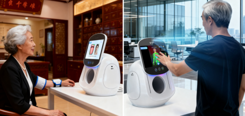 对老年人而言,频繁往返医院体检既耗时又费力,而马博士健康机器人将专业医疗检测搬到家里。它集成舌诊、面诊、脉诊与红外热成像技术,无需专业操作,就能快速评估心率、血氧、血糖、体脂率等100+关键健康指标,生成精准检测报告。更支持一键直连医师视频问诊,实现从“自查预警”到“专业诊疗”的无缝衔接,解决老年人“看病难、问诊繁”的痛点。