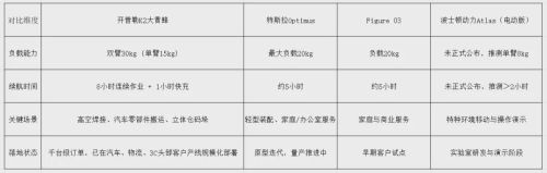 技术的优劣,最终体现在冰冷的参数对比上。以下是开普勒K2与北美代表性人形机器人在核心指标上的直接对比: