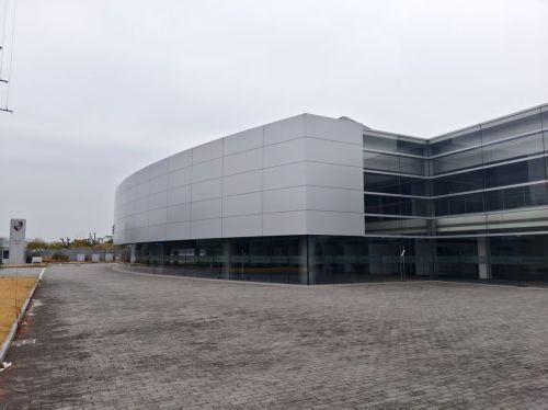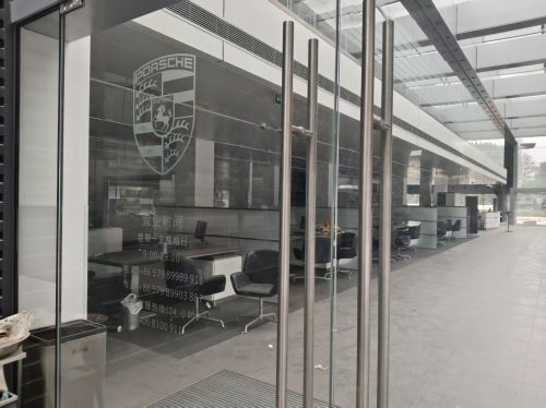 现场竖立的标牌明确显示,此处曾是义乌保时捷中心,作为宝利德旗下高端汽车销售终端,建筑内外至今仍留存着大量保时捷品牌标识,依稀能看出其昔日作为豪车4S店的规模与定位。
