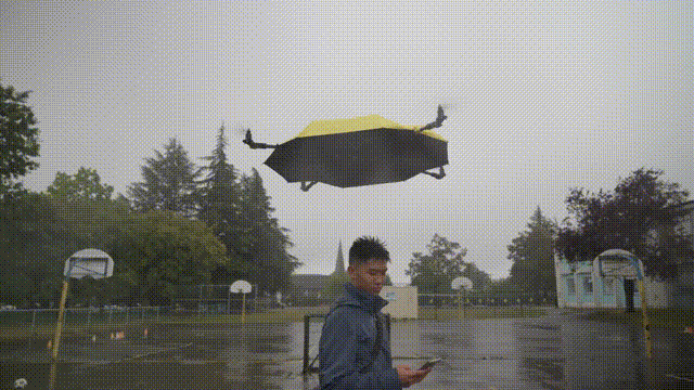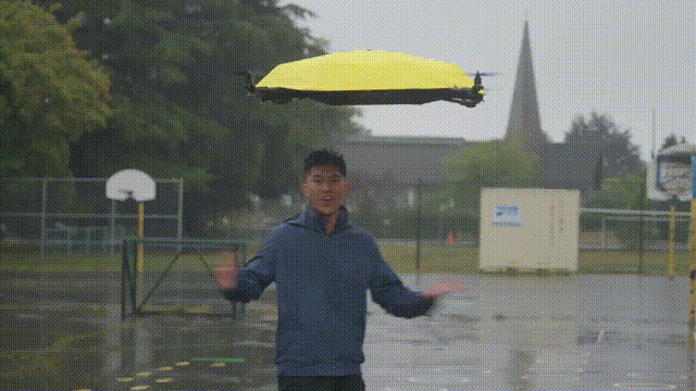 雨天不用手撑伞,一把会飞的雨伞自动悬浮在头顶跟着你走——这个听起来好像还不错的科幻场景,被加拿大工程师John Tse变成了现实。