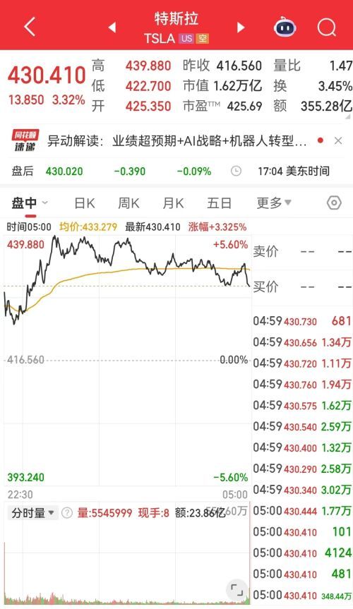 特斯拉涨3.32%,市值一夜增加461亿美元(约合人民币3205亿元)。