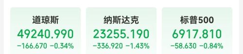 当地时间2月3日,美股三大指数集体收跌。道指跌0.34%;纳指下跌336.92点,跌幅1.43%;标普500指数跌0.84%。