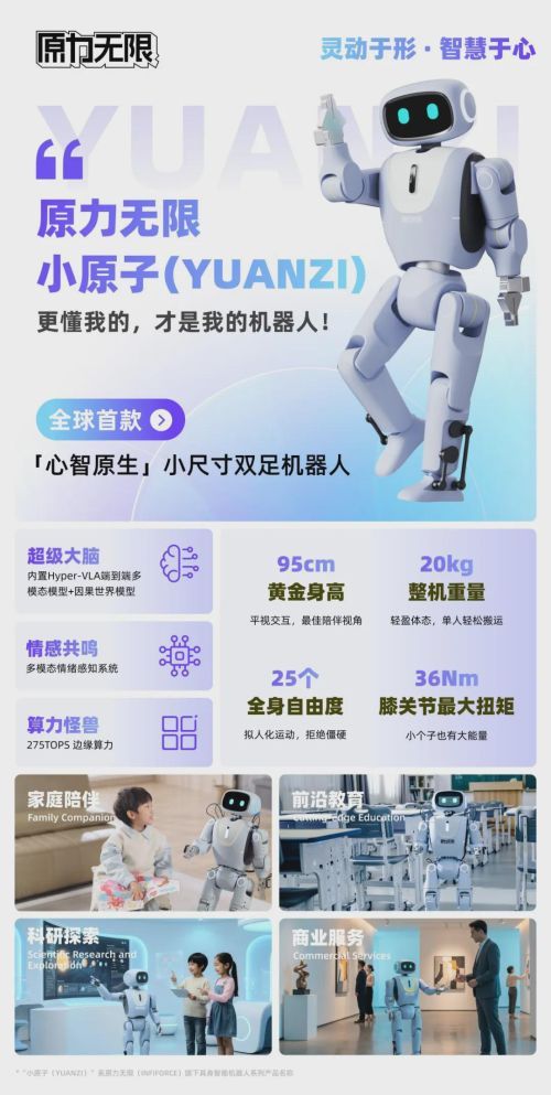 * “小原子(YUANZI)”系原力无限(INFIFORCE)旗下具身智能机器人系列产品名称