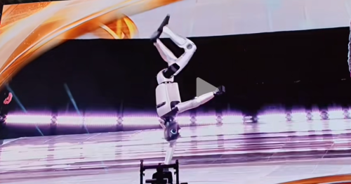 值得关注的是,现场更有魔法原子旗下人形机器人Z1伴舞,并表演单手倒立跳的绝活。