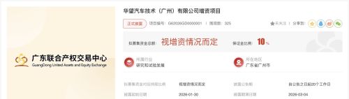 近日,华望汽车技术(广州)有限公司(以下简称华望汽车)增资项目于广东联合产权交易中心挂牌。根据公示信息,该项目的披露起始日期为2026年1月30日,披露期满日期为2026年3月4日。在信息发布期满后,如未征集到意向受让方,华望汽车将延长信息披露,即不变更信息披露内容,按照5个工作日为一个延长周期,直至征集到意向投资方(最长不超过一年)。