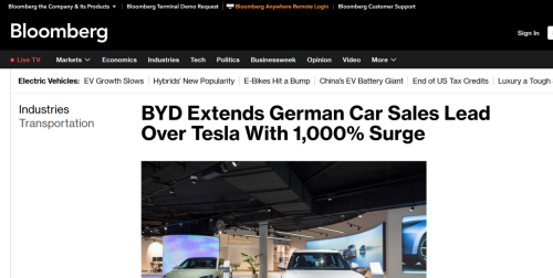 2月5日消息,据彭博社报道,德国联邦机动车运输管理局最新公布的数据显示,中国新能源汽车品牌比亚迪今年1月在德国市场售出2629辆新车,较去年同期的235辆同比激增逾1000%,且销量达到特斯拉同期德国注册量(1301辆)的两倍多。