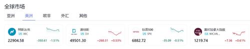 截至收盘,标准普尔500指数跌0.51%,报6882.72点;纳斯达克综合指数跌1.51%,报22904.58点;道琼斯工业平均指数涨0.53%,报49501.3点。连续两日下跌后,纳指也跌破了100日均线。