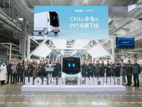 2月4日,优必选旗下智慧物流子公司UQI优奇无人物流车Chitu赤兔α在位于郑州的富士康新能源汽车研发中心完成首批PVT(Production Validation Test)车辆的正式下线。