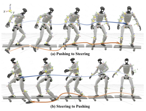 传统的控制方法往往假设环境是静态的,或者将滑板简化为一个简单的轮式底座,忽略了滑板本身复杂的物理特性(如桥的倾斜与转向的耦合)。