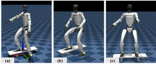 滑板,对于人类初学者来说都是一项极具挑战的运动,通过单脚蹬地加速,双脚站立保持平衡,再通过身体重心的偏移来控制滑板转向。对于机器人而言,这更是一个典型的非完整约束(non-holonomic constraints)与欠驱动(underactuated)系统难题。