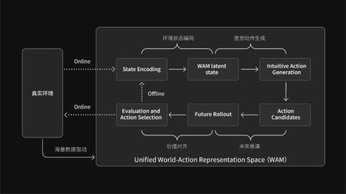 酷哇的杀手锏,是其自研的Coowa WAM 2.0 通用世界模型。 依托海量真实物理世界数据喂养,WAM 2.0 让机器人不再依赖死板的规则,而是像人类一样具备了“环境理解”与“反事实推演”能力。