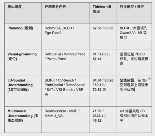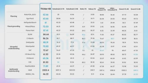 2026开春,人形机器人第一股优必选正式开源其具身智能大模型Thinker的架构升级版。在英伟达、字节跳动、北京智源等全球顶尖梯队的混战中,Thinker以不到10B的小身板,横扫了空间理解、任务规划等9项核心权威基准。