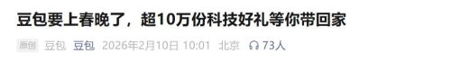 据豆包官方微信号,2月16日除夕当晚,豆包还将通过总台春晚,为全国观众送出超过10万份科技好礼,以及最高8888元新春现金红包。