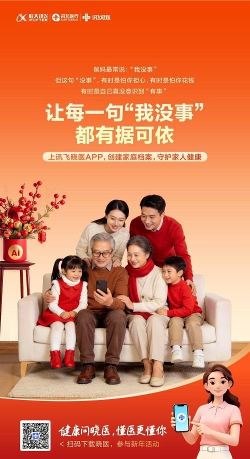 记者获悉,2026年春节期间,讯飞晓医APP将推出“创建家庭健康档案·守护家人健康”主题活动。活动期间(2月15日至3月3日),用户登录讯飞晓医APP完成创建健康档案、解读报告单、为家人健康咨询等指定任务,即可参与互动抽奖,赢取手机Mate80等新年惊喜好礼。