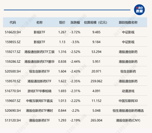 下跌方面,影视ETF跌超3%。